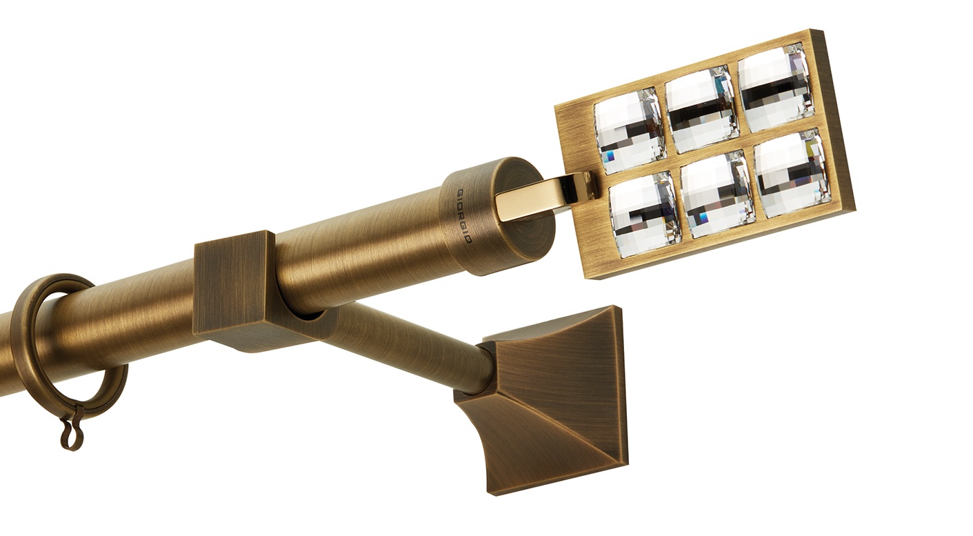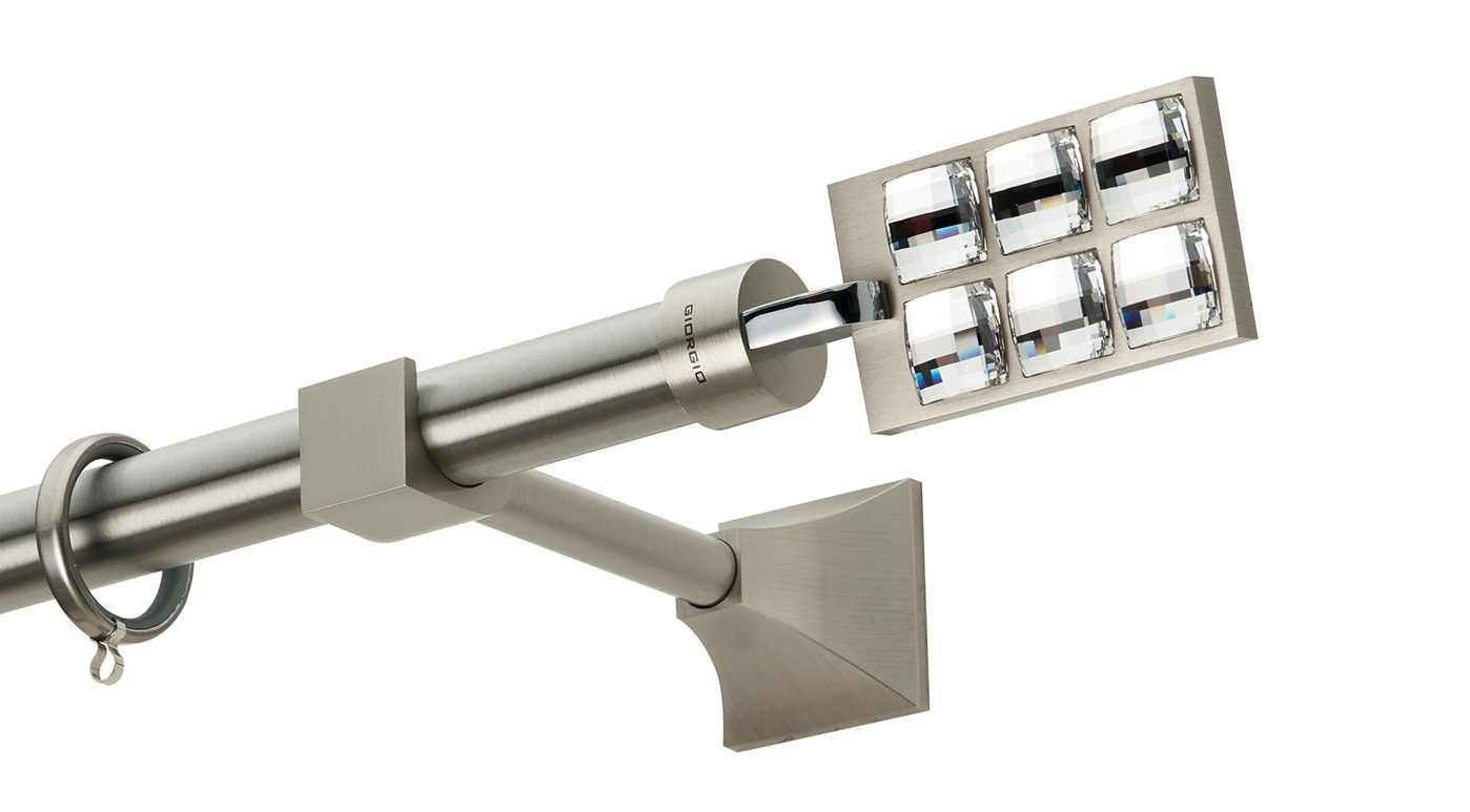 Κουρτινόβεργα Φ25 κατασκευασμένη από πρώτης ποιότητας υλικά και συνδυασμένη με κρύσταλλο SWAROVSKI .Στην τιμή περιλαμβάνονται ο σωλήνας, τα στηρίγματα ( 3 για τις διαστάσεις 3 μέτρα ),οι κρίκοι,τα τέρματα και τα υλικά στερέωσης.